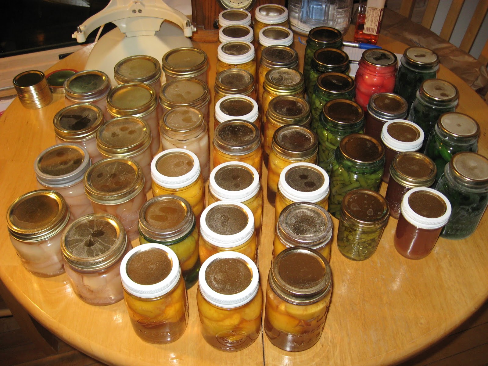 In the picture below, the canner is actually what is called a "sweet corn pot" which we purchased from Bomgaar's this year. Our last kettle which was just like it had sprung a leak, so it would leave its autograph on the cooktop after we had used it. I like to use "sweet corn pots" as small water bath canners because their bottoms are flat so they make good contact with the stovetop and facilitate efficient heat transfer.